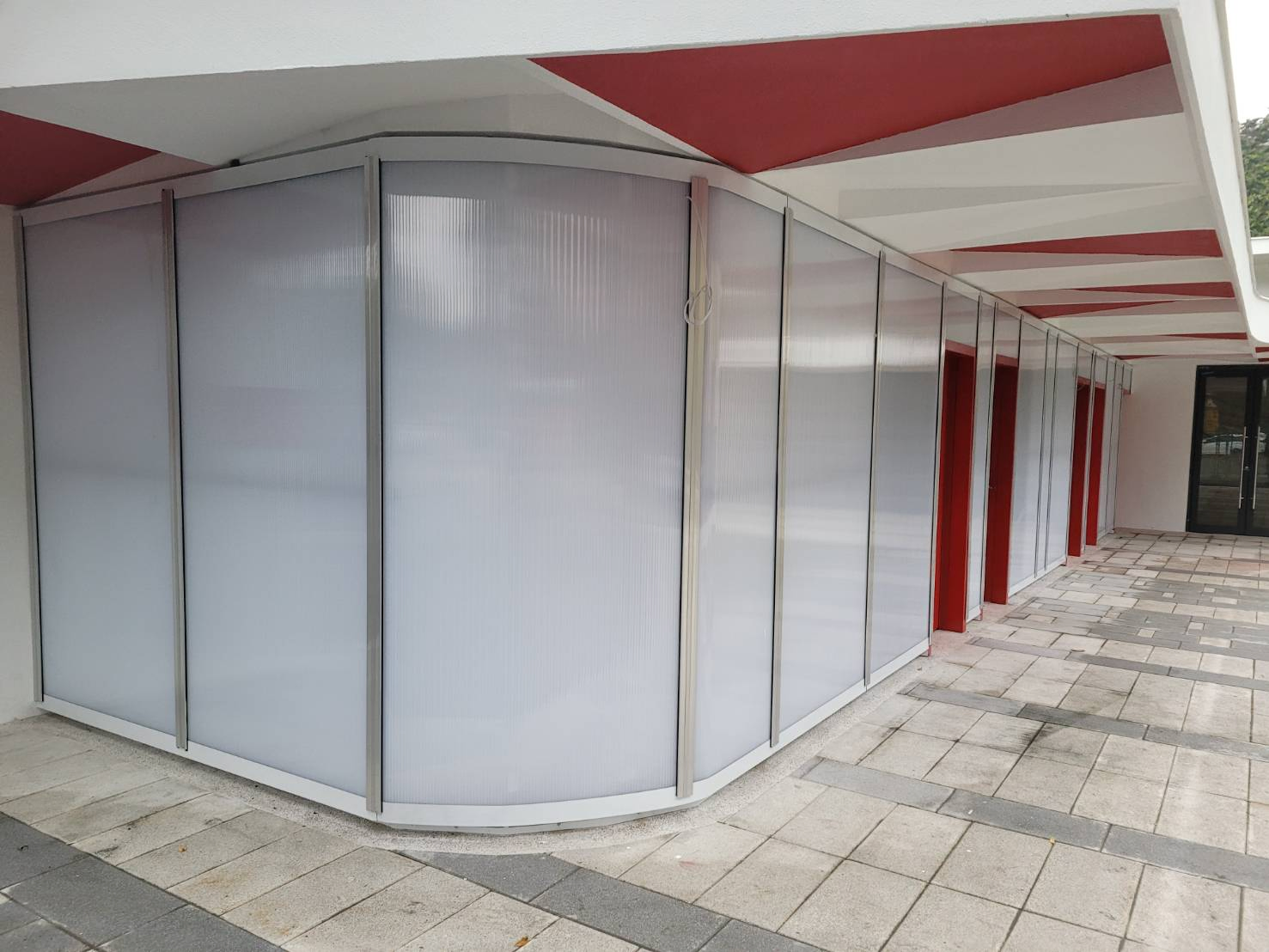 建築師採用PC中空板16mm厚度,取其透光不透視、耐撞擊、隔熱等效能用於外牆設計